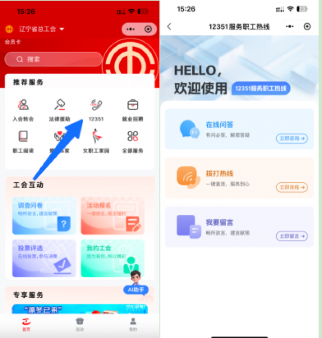 12351作为职工的专属热线服务为职工提供24小时全天候的人工智能客服服务职工可通过平台便捷入口随时咨询各类问题表达诉求实现职工诉求“点对点”直达确保职工的每一声呼唤都能得到及时回应。